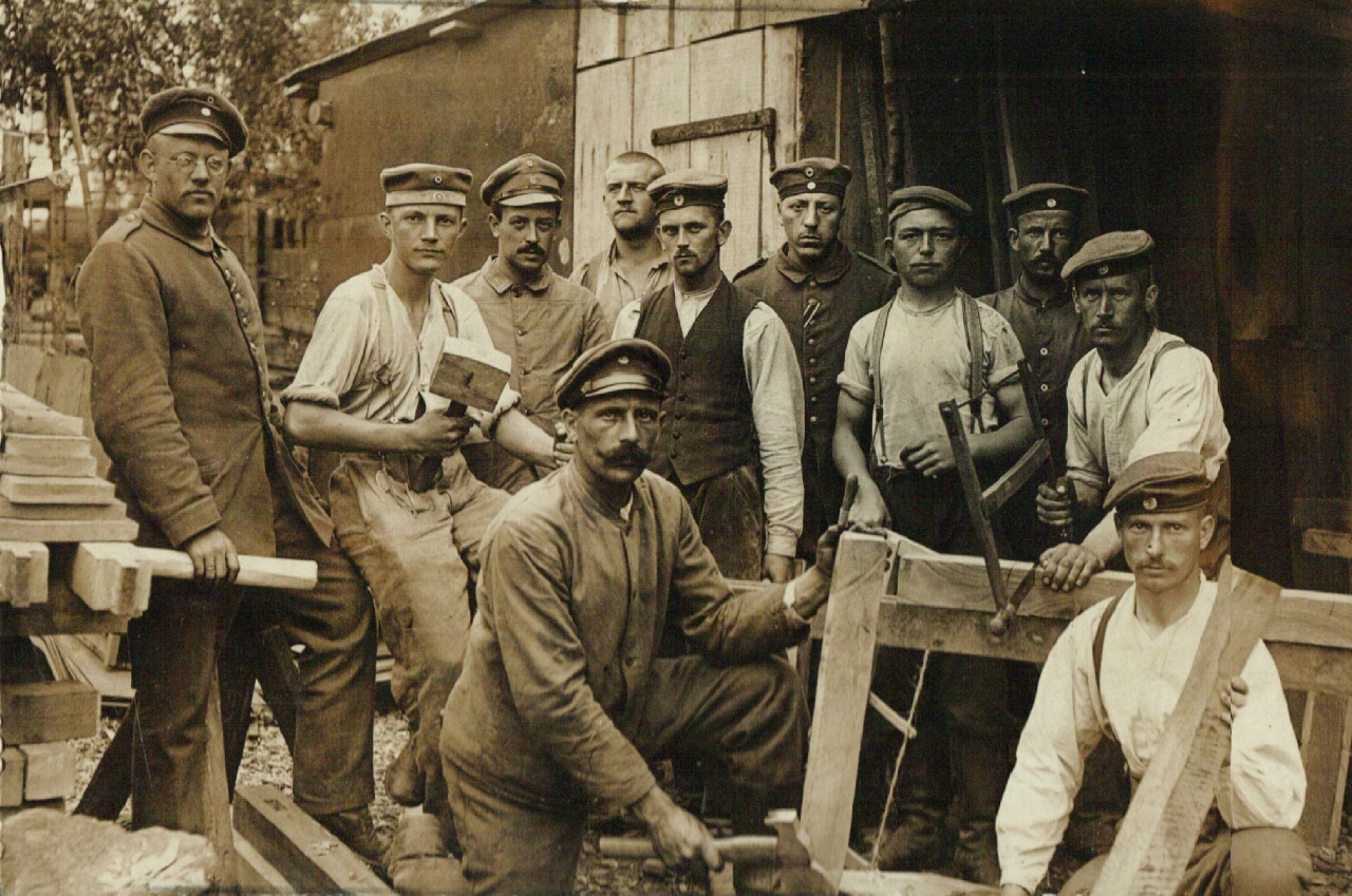 Die weiter liegende Werkstätte für das Biegen der Eisenbetonarbeiten.